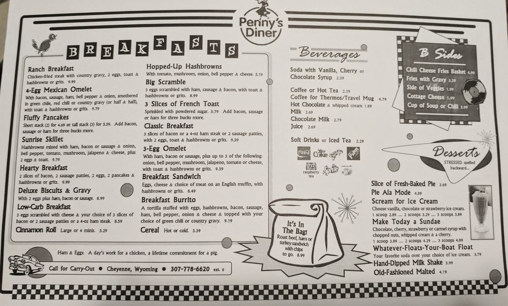 Penny's Diner, located in Cheyenne, Wyoming, offers a nostalgic 50's themed dining experience. Serving American favorites like breakfast, brunch, and dinner, this diner provides a cozy atmosphere with friendly service. Customers praise the tasty food, especially the Triple Decker Club sandwich and All-American Patty Melt. The Chicken Fried Steak and Monterrey Chicken are standout dinner options. With accommodating staff like Marion, who goes above and beyond to ensure a pleasant dining experience, Penny's Diner has become a go-to spot for locals and travelers alike. The authentic diner feel, complete with classic dishes like burgers, fries, and onion rings, makes this spot a must-visit in Cheyenne. Don't miss out on the opportunity to enjoy delicious comfort food in a welcoming environment at Penny's Diner.